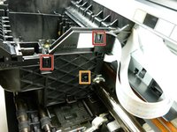 By default, the cartridge box is on the right most side of the printer. To get the printhead out, you need to disengage two tabs on the back of the cartridge box, shown on step 18. It's impossible to get to the right side one unless you can move the cartridge box close to the middle. And by default, you can't move the cartridge box by hand unless you unlock it on step 13, which is inside the side housing. If you can get away with sticking your hand inside the small rectangular hole of the top housing, then you don't have to take it off. But it's very difficult to maneuver your tweezers without lots of room. It's a tricky and awkward motion for your hand to disengage it, so we took off the housing first.