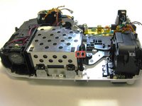 Using the same Phillips #1 screwdriver, remove the two 10 mm screws where the white panel was removed on the topside of the projector in Step 1.
