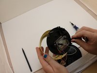 Using a Phillips screwdriver, remove the silver base located on top of cellinoid in upper right hand of inner clock.