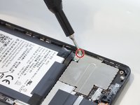 Use a Phillips #00 driver to remove the two 1.5 mm screws securing the display cable.