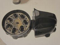 • Twist the clear collar to release the wash screen and small circular collar exposing the cyclone attached to the black head.