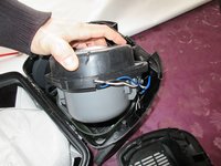 First pull the plug and roll on the Cable. Unplug the vacuumhose. Open the machine