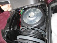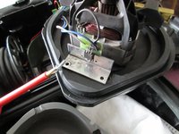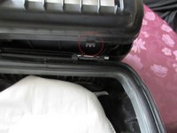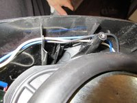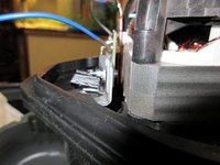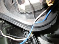 Look at red circle, there is a notch, there is where the White cable, the blue cable and the black cable go through the housing.