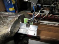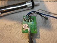 Steps 7-8 - there is a rivet that goes through the triack, then through the heat sink, then through the PCB. For getting the rivet out, you drill with a 4mm drill bit through the rivet head, through the triac mount, and lift the triac out of the way, then continue very carefully through the heat sink. Now the PCB can be removed from the heat sink. Then switch to a 3mm bit and drill the remnants of the rivet out of the PCB.