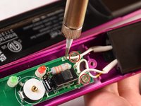 Desolder the two white, one red, and one black cables from the mother board to remove all connection to the flat iron.
