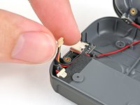 Use the tip of a spudger to push the right earbud cable head out of its socket to disconnect it.