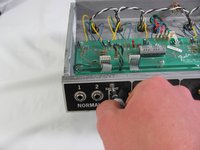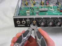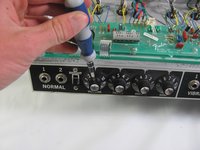 Take off the back panel by unscrewing the four screws on the back of the amplifier. The back panel lies in front of the back of the amplifier head so we must remove it to access the input jack.