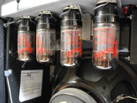 Take off the back panel by unscrewing the four Phillips head screws on the back of the amplifier. You will find the four power vacuum tubes are the largest ones on the left side.