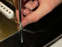 Once the cap and knobs have been removed, you may begin removing the screws around the perimeter of the pickguard.