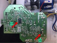 La commande de la pompe est confiée à un thyristor (rep16) Ici il s'agit d'un BT168GW Il peut être mis en cause si la pompe ne démarre pas. Il faut évidemment commencé par tester la pompe en premier lieu (cf étape 1)