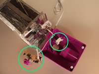 Remove the 4 screws on the bottom of the toaster. One screw has already been removed in this picture. It was lost in a terrible screwing accident and will make no appearance in this guide.