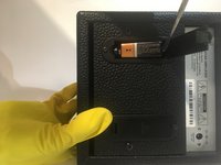 • Remove the corroded battery with the assistance of the Spudger and place the battery in the plastic bag.