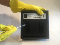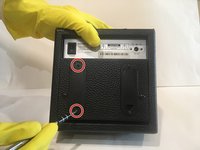 • Close the lid of the battery cartridge and begin to unscrew the two 13mm screws located at the top and bottom of the battery cartridge with the Phillips #0 Screwdriver.