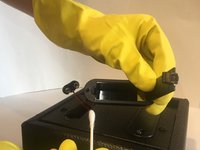 • Rub the inside and outside of the battery cartridge as well as the battery terminal with the Q-tip to remove any acid residue. Use as many Q-tips needed to remove the acid.