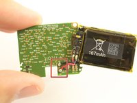 Lift and push the motherboard to the side to uncover the 167mAh battery.