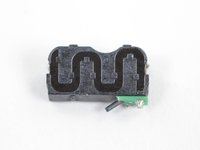 look at the enlarged image... Left Pin is connected to the housing of the vibrator - this tells me its GND or Neg, center pin has a much thinner track on the PCB i would call it Data, right pin therefore looks like VCC+.