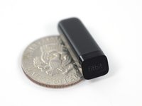 This tiny gizmo fits snugly in its USB charger when its lithium-polymer battery needs juice.