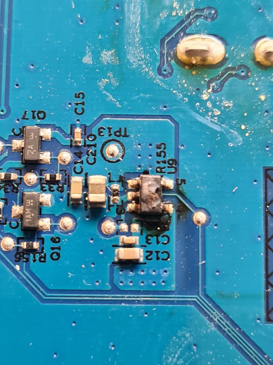 Any capacitors with signs of corrosion or bulges need to be replaced as they will destabilize the display gradually and can cause shorts and irreparable damage.