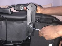 To be able to reach the bolts on the bottom of the seat in an easily accessible manner, you should pull out the leg rest and recline the seat all the way back.