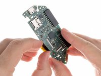 Disconnect the screen ribbon cable from the board. Use a plastic pick to lift the latch up to open the lock and carefully pull it out of the connector.
