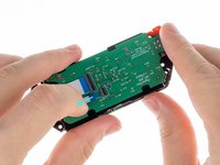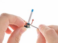 Disconnect the small ribbon cable from the board. Use a plastic pick to lift the latch up to open the lock and carefully pull it out of the connector.