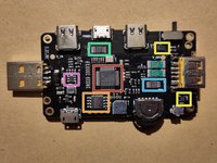 Green square: RS2228 MCO7117 (High-Speed USB 2.0 (480-Mbps) 1:2 Multiplexer/Demultiplexer Switch). Probably to switch between the USB micro and -C inputs.