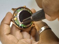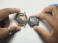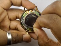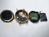 The inside of the watch will be exposed. Now, you can disconnect all the golden connections (battery, display, etc) and carefully loosen the battery housing from the shell.