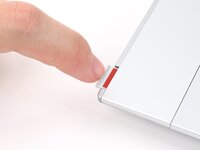 Press the Touchpad Module down and slide it into place so it lines up evenly with the bottom edge of the laptop.