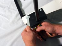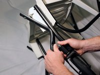 • Turn the chair around to see the two base plates that hold the axle to the back of the chair. There are two screws on each of the plates that connect the chair to the axle.