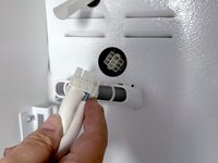 Rotate the ice maker to the right and lower the front end to access the cable.