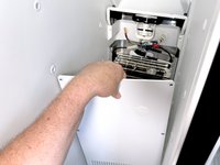 Use a 1/4" nut driver to remove the two screws securing the ice maker to the sidewall of the freezer compartment.