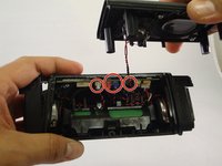 Remove black "clip" from the circuit board. Using the T9 screwdriver head remove the 2-7.20mm screws, and remove the speaker from the body of the device