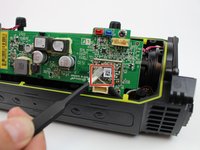 Use tweezers to remove the two ribbon wires on the left and right side of motherboard.