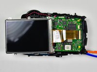 Using Phillips #00 screwdriver remove two 3.0 mm screws on the back of the camera. This will remove the eyelet for the camera strap and the rear cover.