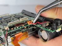 Use the tweezers to grab the speaker (located on left side of the camera) and pull straight up.