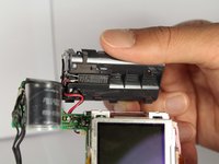 In order to access the battery compartment, the back cover of the camera needs to first be removed.