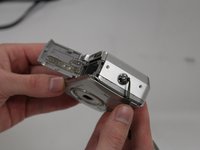 Pry the case apart. Note that the case is very tightly sealed and will be difficult to open. Use a plastic opening tool on the crease between the two halves of the case and put two fingers in the battery compartment to create leverage to pull apart. The battery compartment is attached to the half of the case that contains the lens.