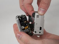 Tilt the back half of the case away from the battery compartment. Proceed slowly to avoid damage to the ribbon cable that is connected to the screen.