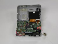 After the speaker pad has been removed, the two halves of the case will be connected solely by a ribbon cable leading to the screen. The speaker wires will remain attached to the motherboard.