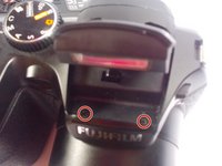 • Remove two silver plated screw from under the top of the camera, under the flash.
