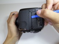 • Continue this motion around the camera to create a wedge between the front and back casing of the camera.
