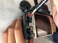 Remove all the 4mm screws from the left, right, and bottom of the camera.
