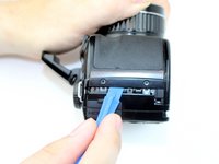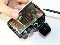 Gently tilt the LCD screen toward the bottom of the camera and use a spudger to flip the lock for the ZIF cable attached to the LCD.