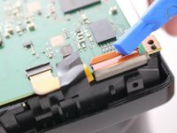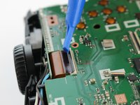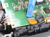 Gently tilt the LCD screen toward the bottom of the camera and use a spudger to flip the lock for the ZIF cable attached to the LCD.