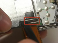 Locate the tab securing the ribbon cable that connects the screen to the motherboard. Using a spudger, gently lift the tab to release the ribbon. Carefully disconnect the screen from the motherboard.