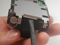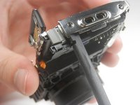 Pry off the center casing of the camera. Separate the top and side sections individually before fully removing the casing.