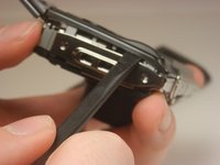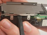 Unscrew the two 3.5 mm Phillips head screws in the metal plate.