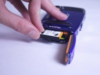 Simply insert the new battery following the black arrow printed on the battery, matching the orange side of the battery to the orange rubber of the inner battery door.