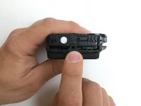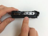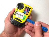 Using a plastic opening tool, gently pry up the edge of the button case, located at the top of the camera, until it unclips.