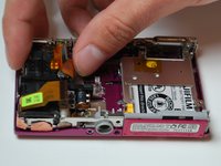 • Detach the two ribbon cables on the left side of the camera the same way the LCD cable was detached.